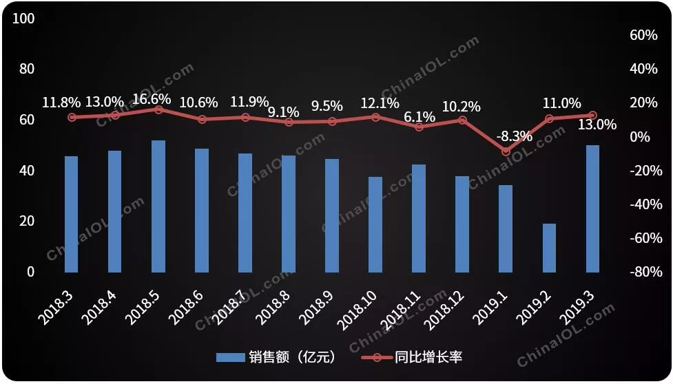 产业在线监测数据显示,2019年一季度多联机销售额为108.8亿元,同比增长4.4%,其中内销额为100.7亿元。一季度多联机市场的增长,主要源于国内市场需求的拉动作用在3月份持续显现。